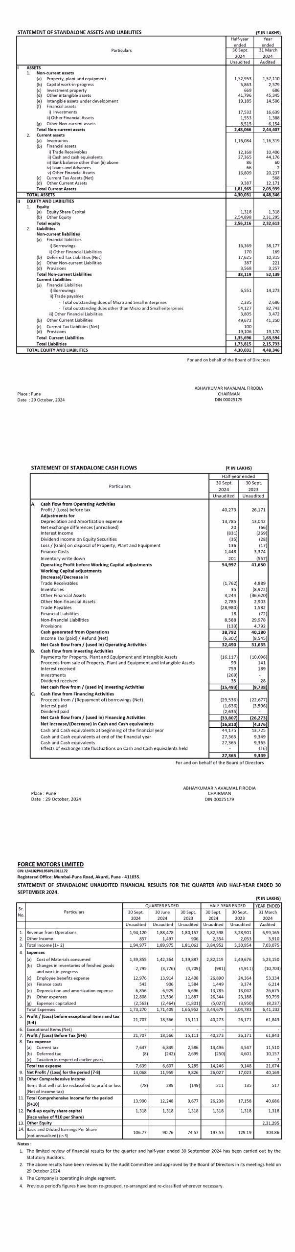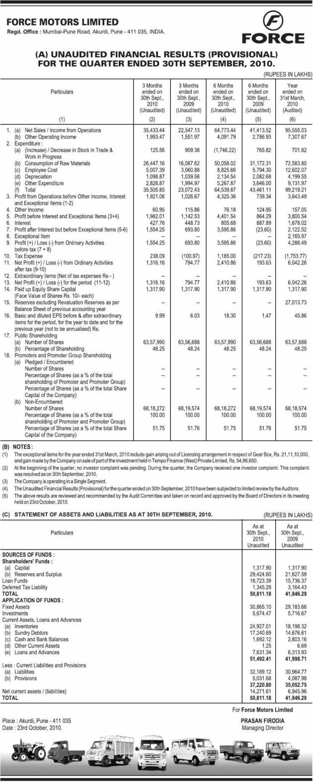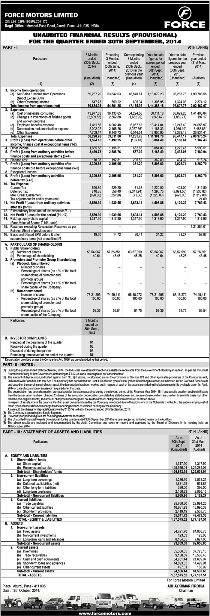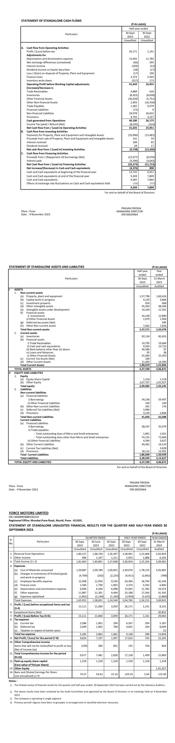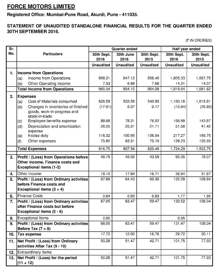 Unaudited Financial Results for the Quarter & half year Ended