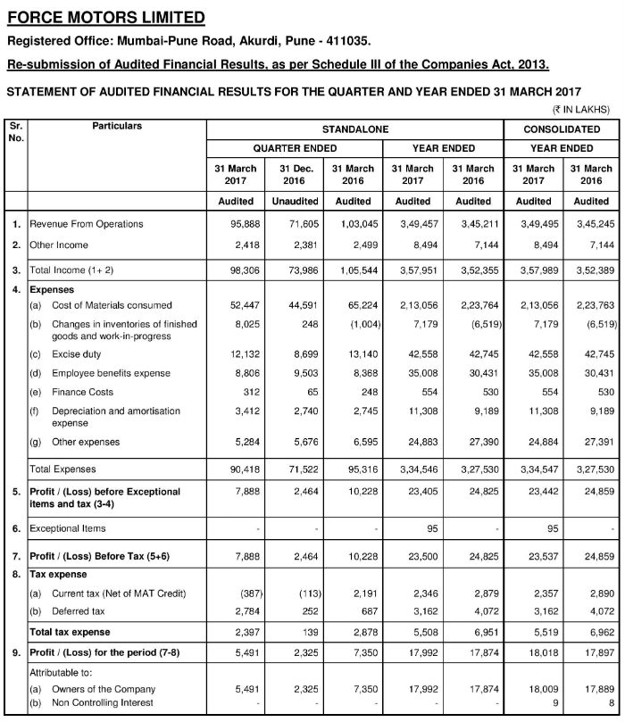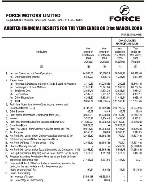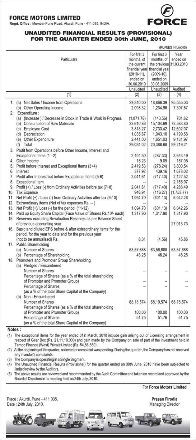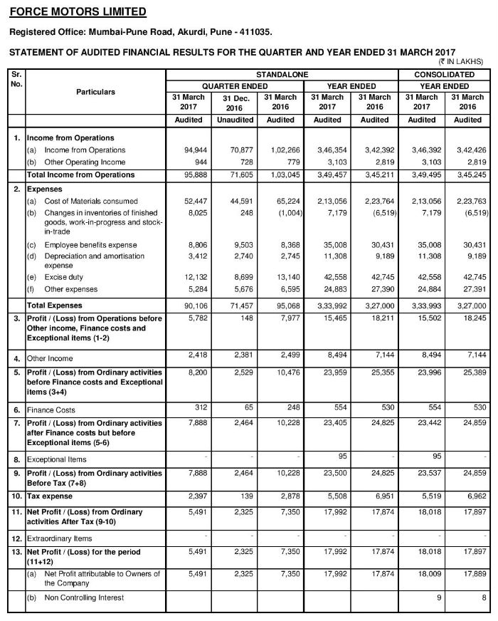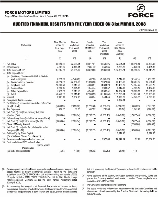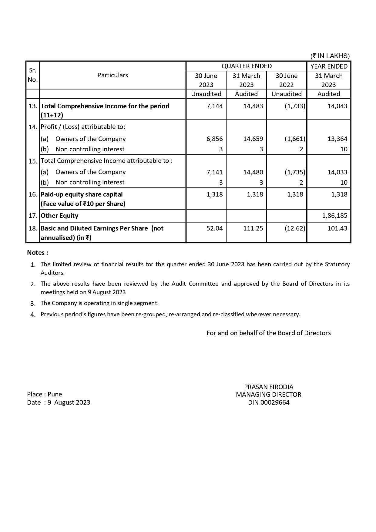 Audited Financial Results for the Quarter Ended
