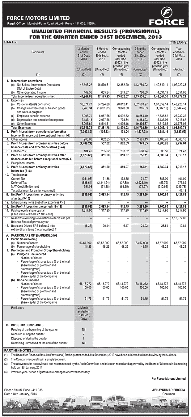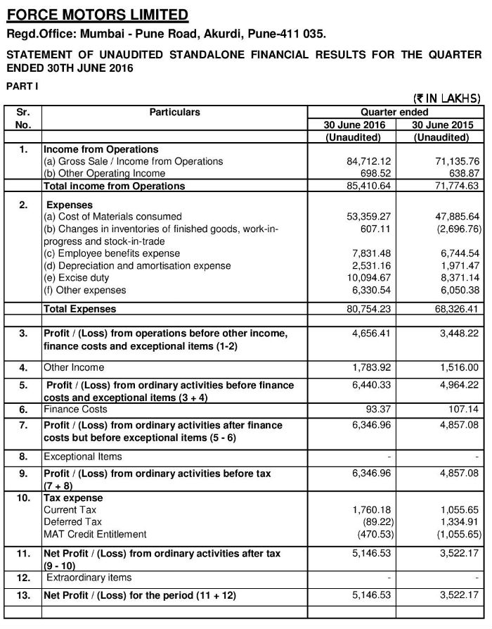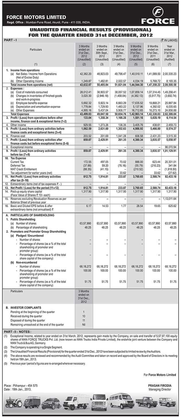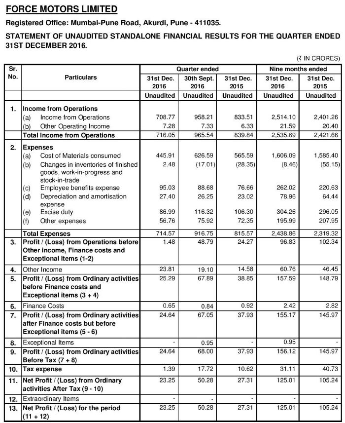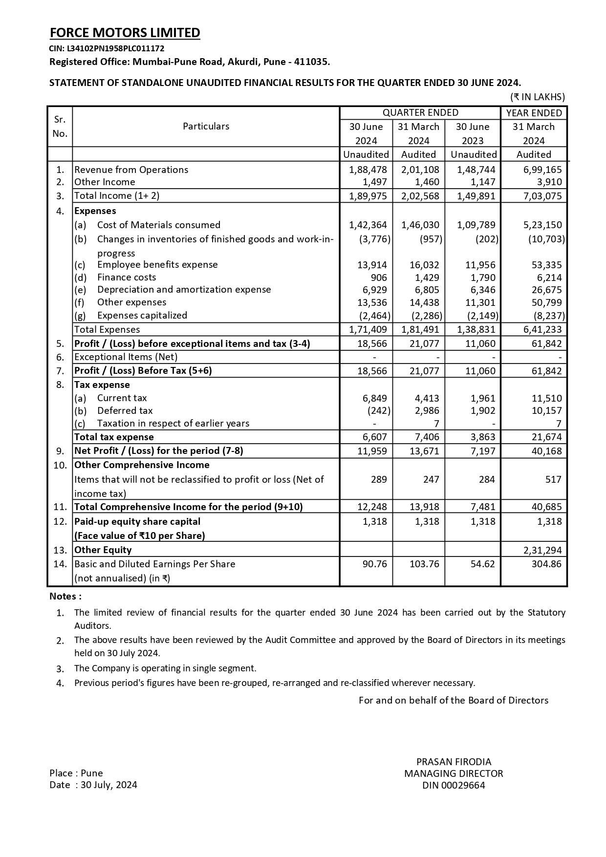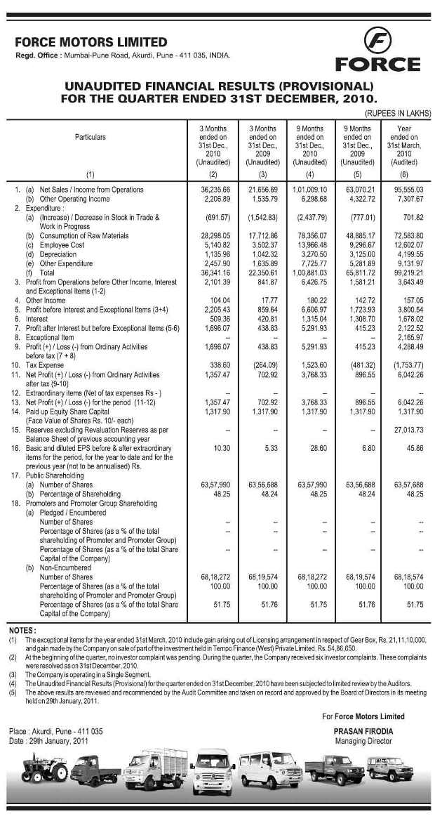 Audited Financial Results for the Quarter Ended