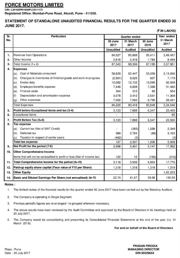 Outcome of Board Meeting held on 20th July 2017