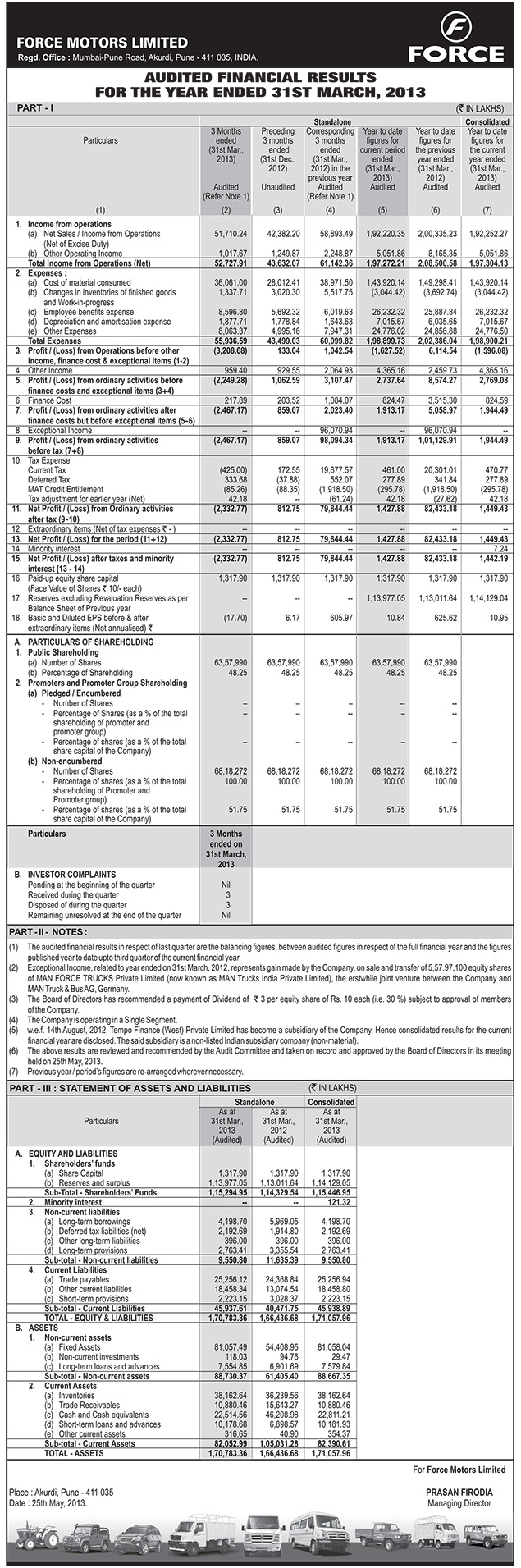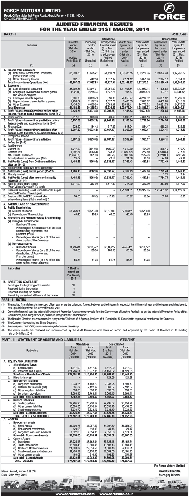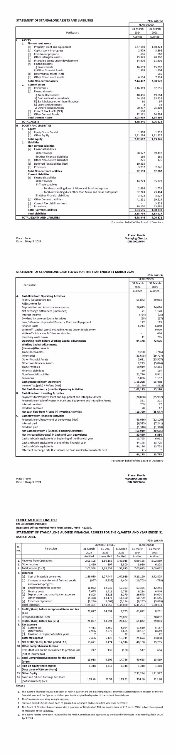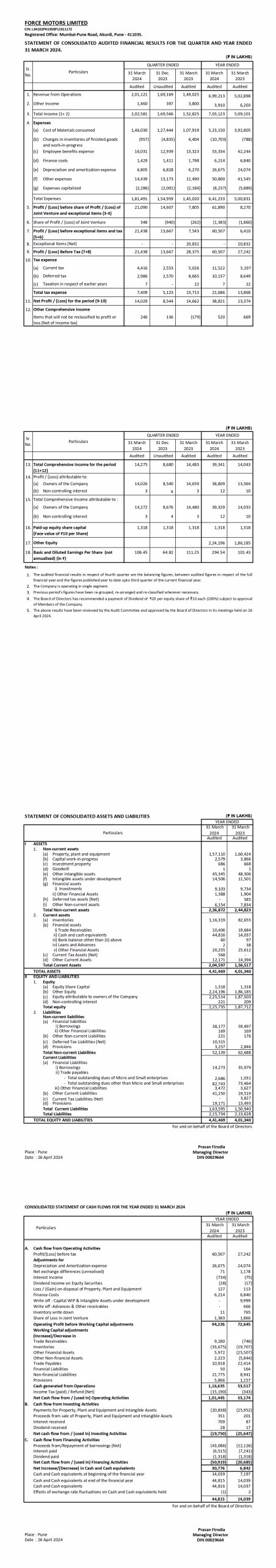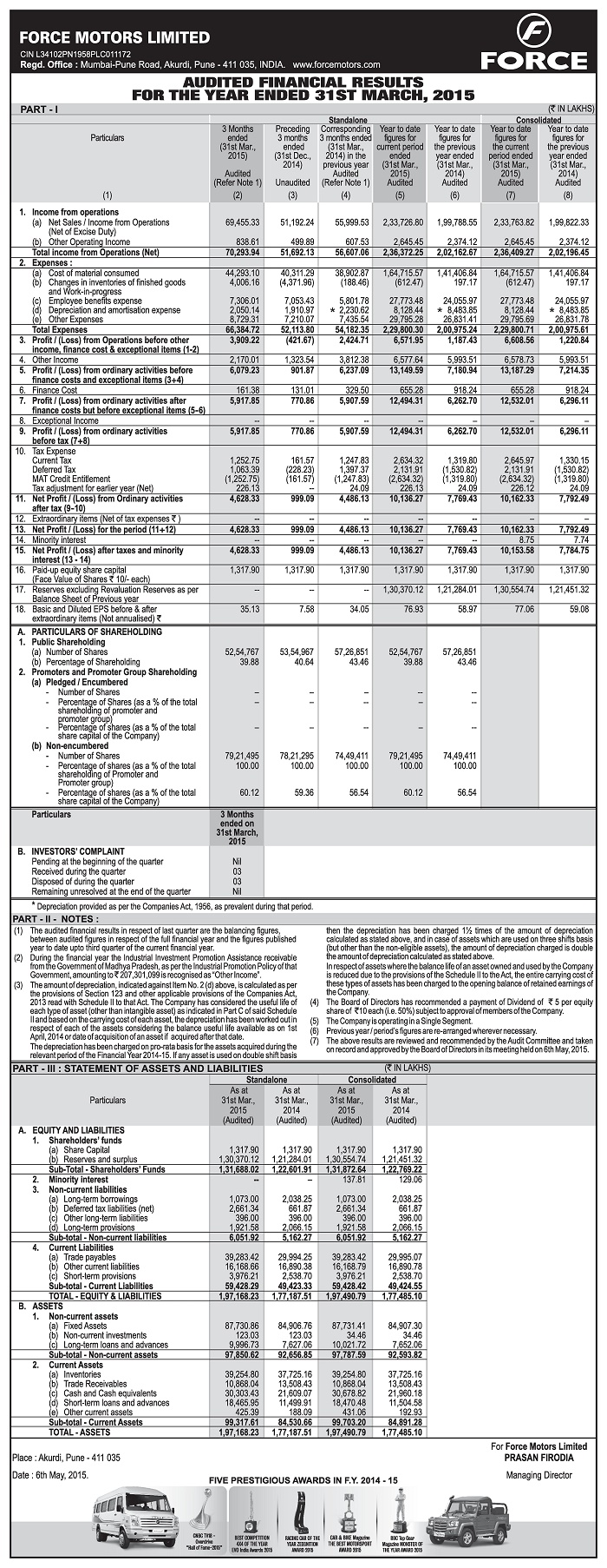 Audited Financial Results for the Quarter and Year End.
