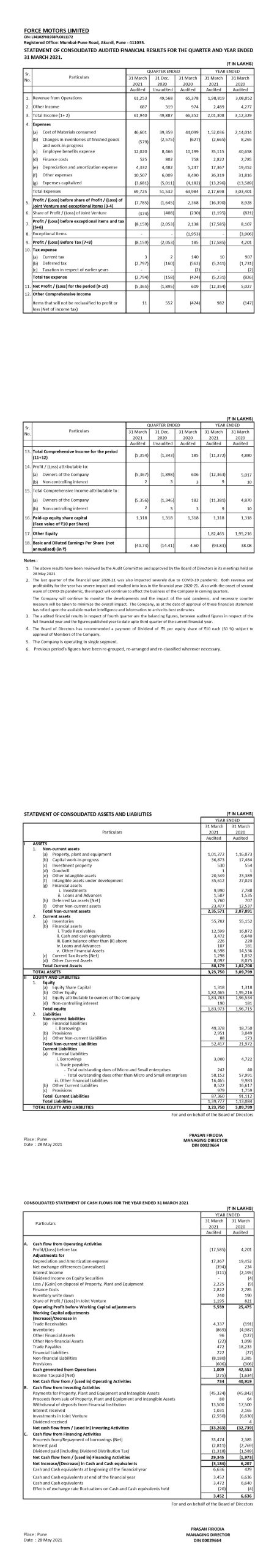 Consolidated Financial Results for the year ended 31st March 2021.