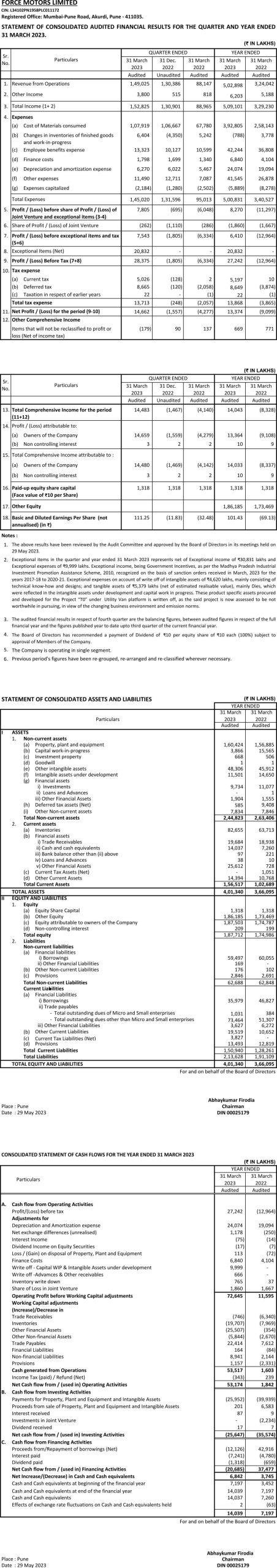 Statement of consolidated audited financial results for the quarter and year ended 31st March 2023