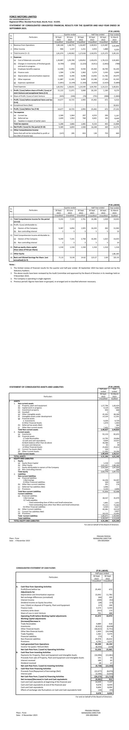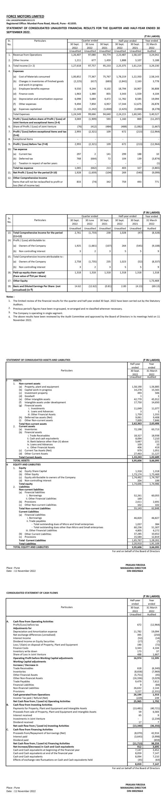Statement of Consolidated Unaudited Financial Results for the Quarter and Half-Year ended 30th September 2022.