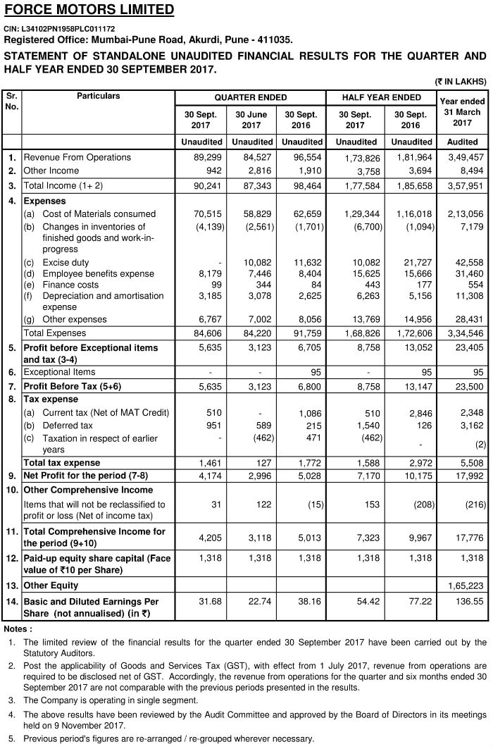 Outcome of Board Meeting held on 9-11-2017