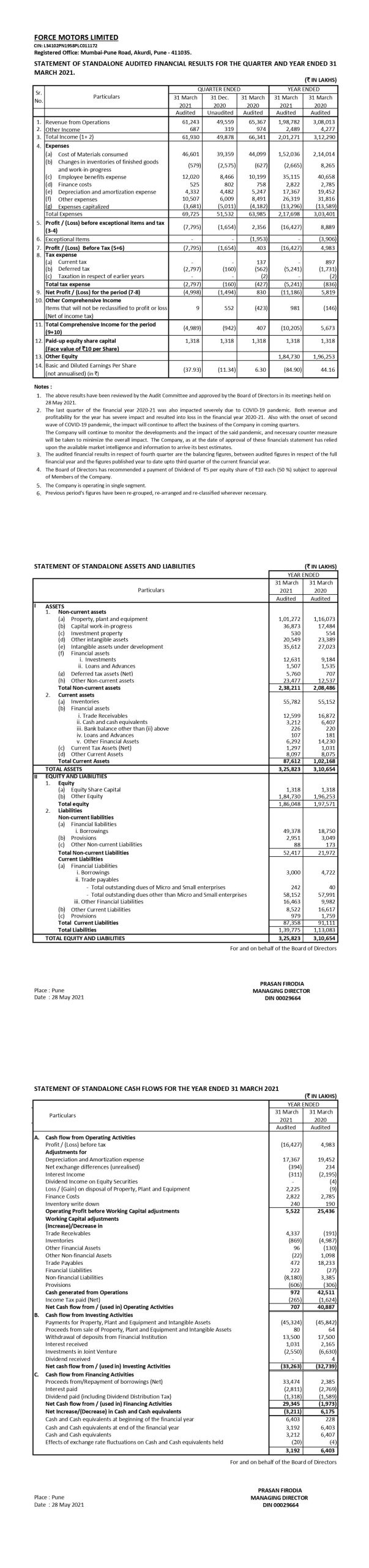 Standalone Financial Results for the year ended 31st March 2021.