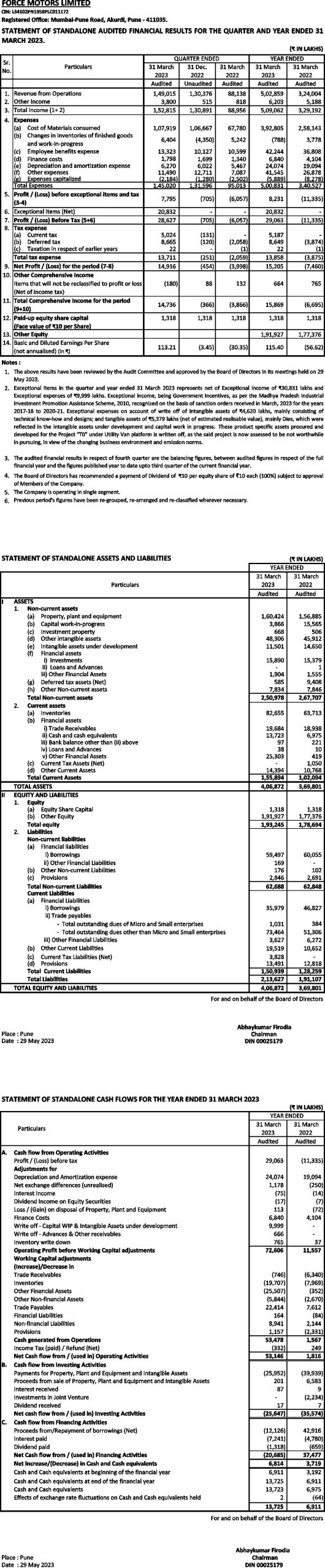 Statement of standalone audited financial results for the quarter and year ended 31st March 2023