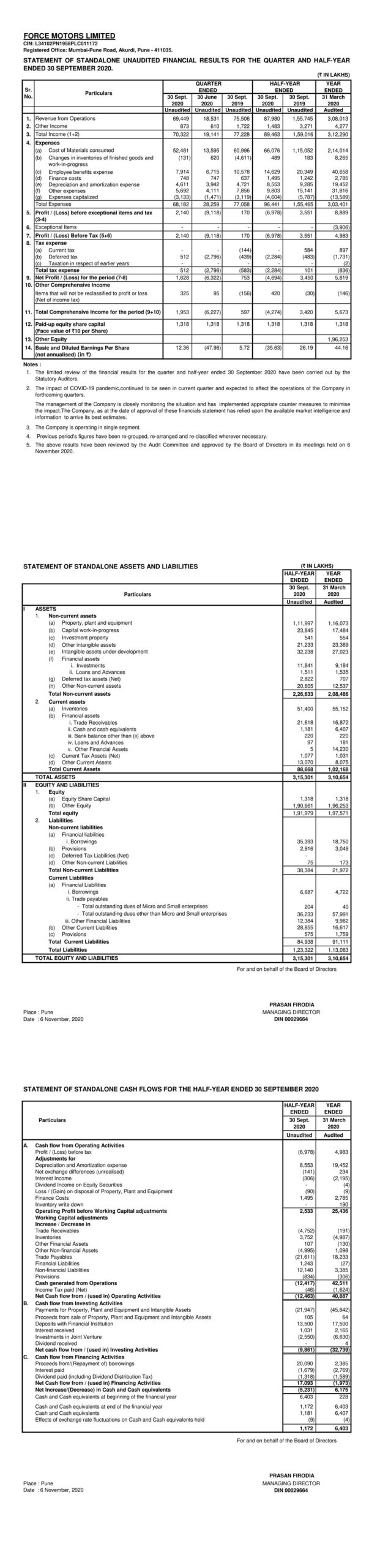 Standalone Financial Result of Quarter and Half Year Ended 30th September 2020.